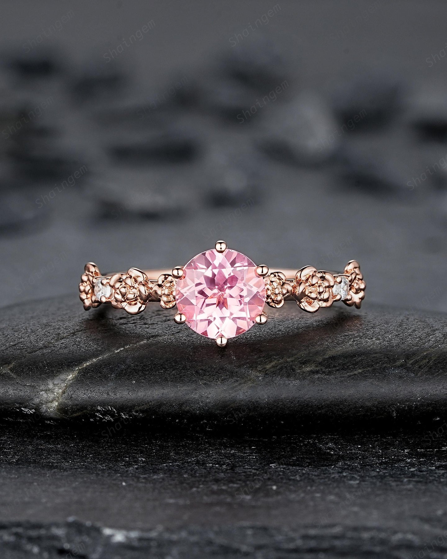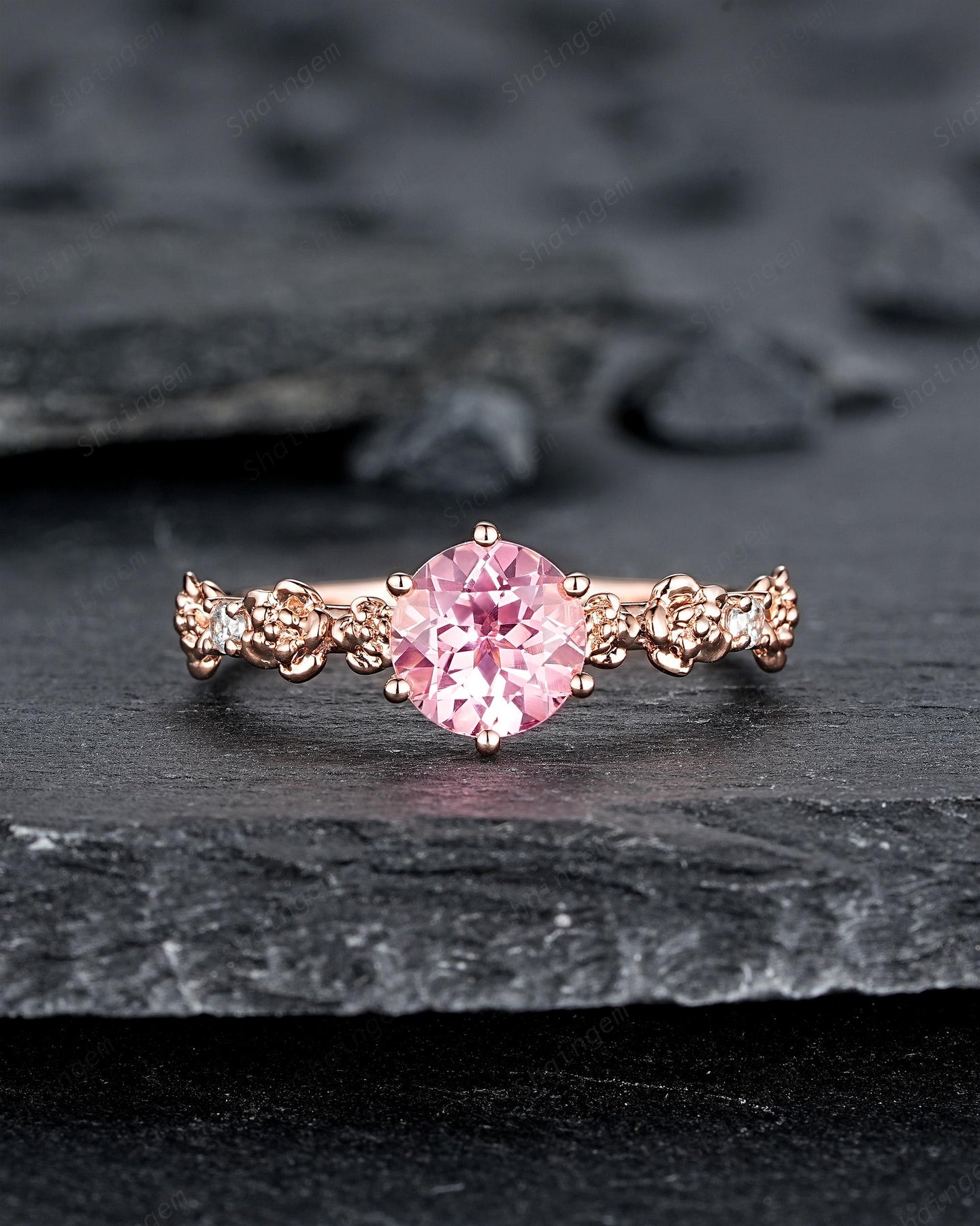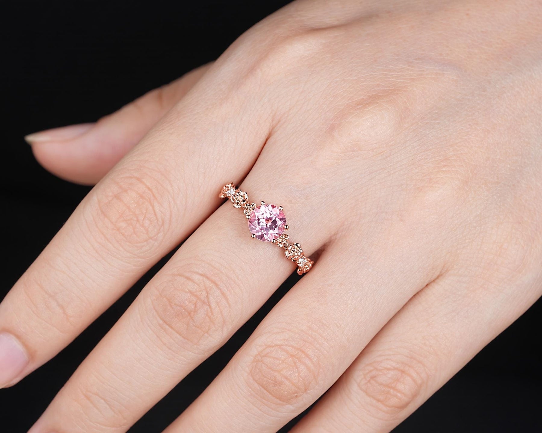 Unique Nature Inspired Round Shape Pink Sapphire Engagement Ring, Vintage Rose Flower Wedding Ring, Rose Gold Floral Promise Ring Gift Women