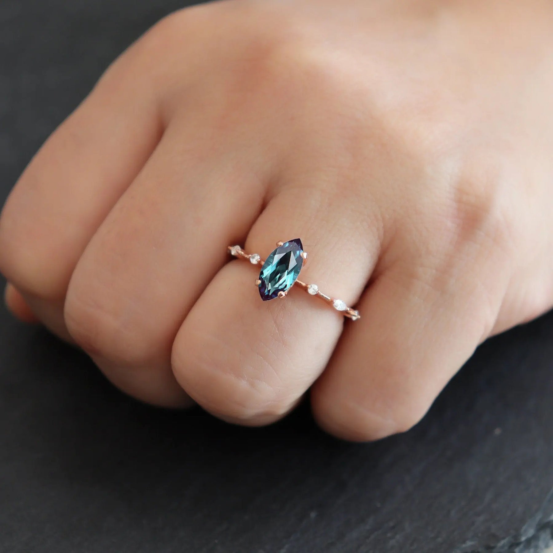 ·Center stone: 1.5CT 5x10mm Marquise Cut Lab Alexandrite